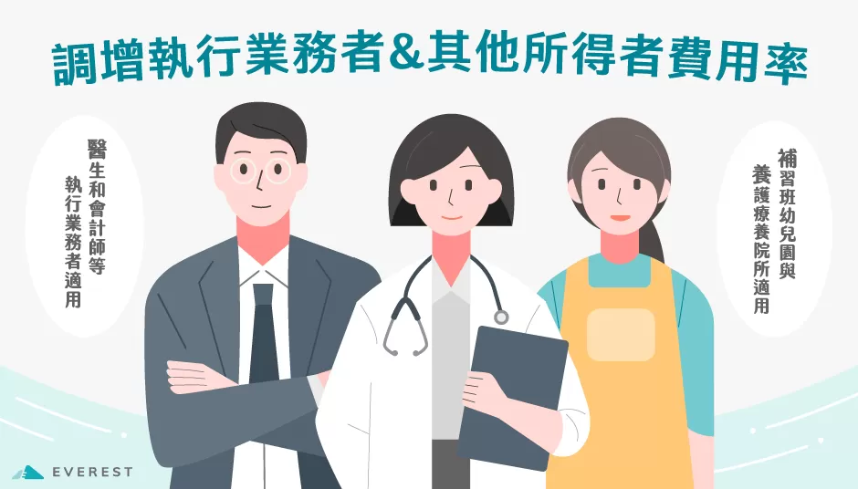 財政部說明,考量執行業務者及其他所得者因受COVID-19疫情影響致收入減少、費用增加,使費用占收入之比重增加,故適度調增111年度執行業務者及其他所得者費用率,調整如下: