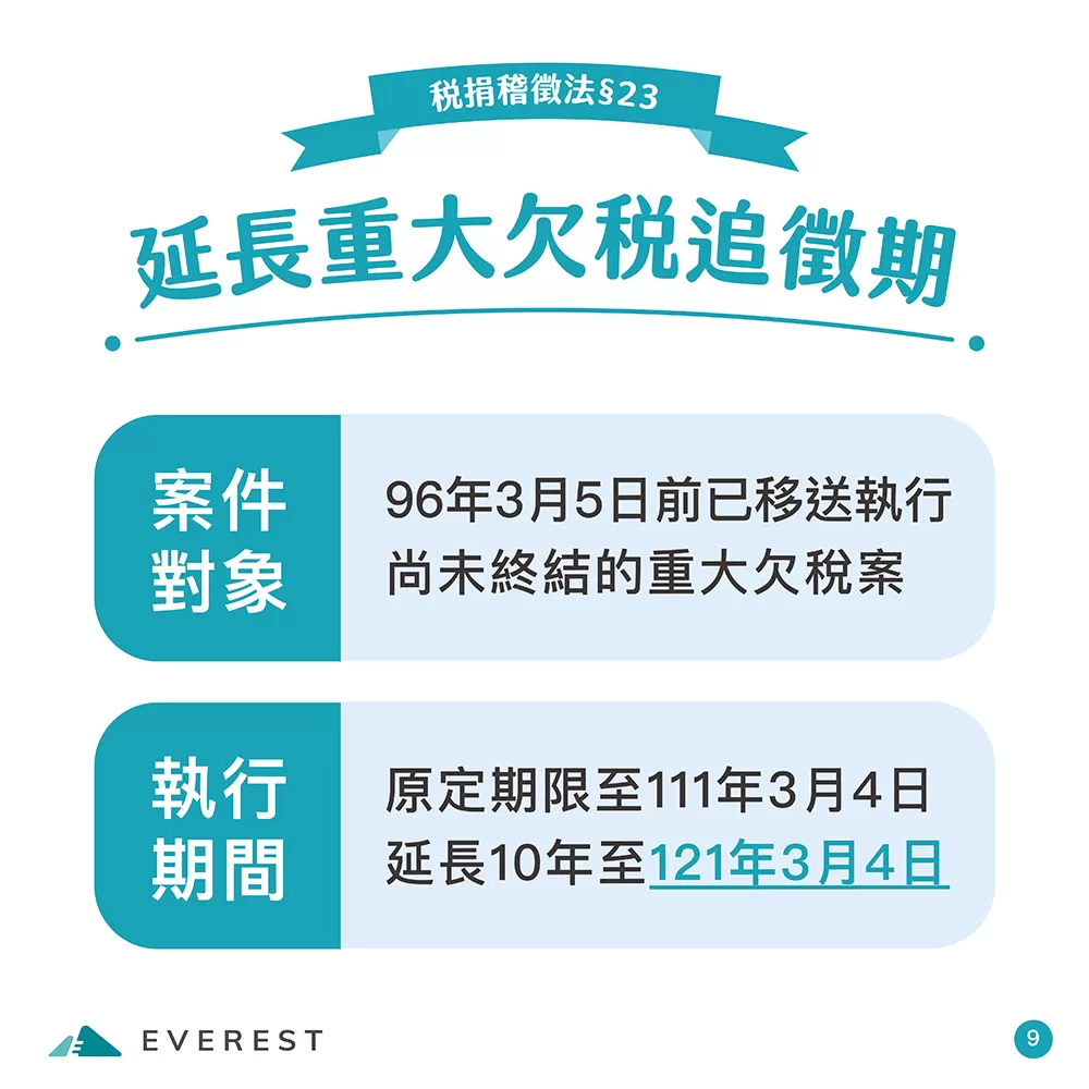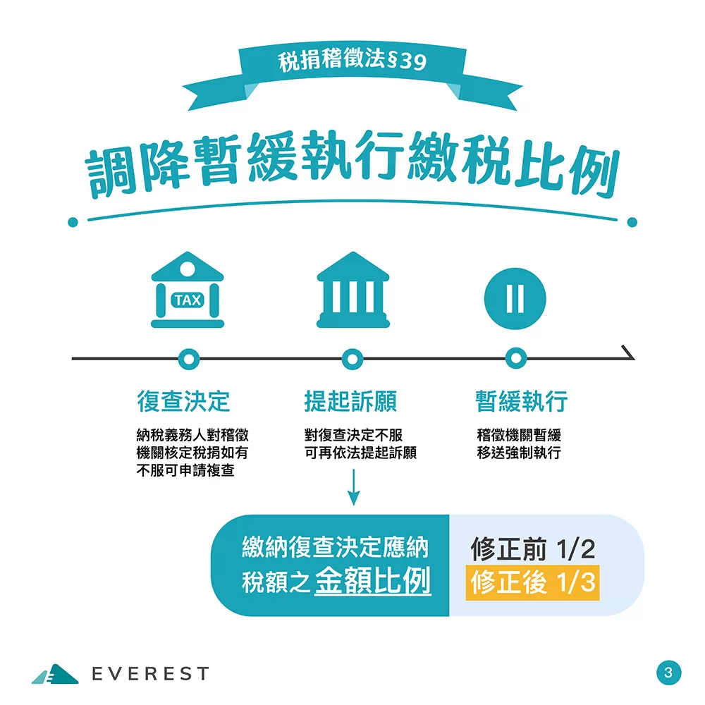 稅捐稽徵法是所有稅捐徵收的基本大法,為了維護民眾權益、減輕負擔,同時實現租稅公平、保障國家債權,財政部在綜合各界意見後,推動立法以來最大幅度的修法案(共修正27條)終於在朝野黨團共識下11/30立法院三讀通過!除了第20條由行政院另定施行日期外,其餘條文等總統公布後施行。接下來,相關辦法及配套措施將儘速辦理,也會請國稅局加強宣導、向外界充分說明。